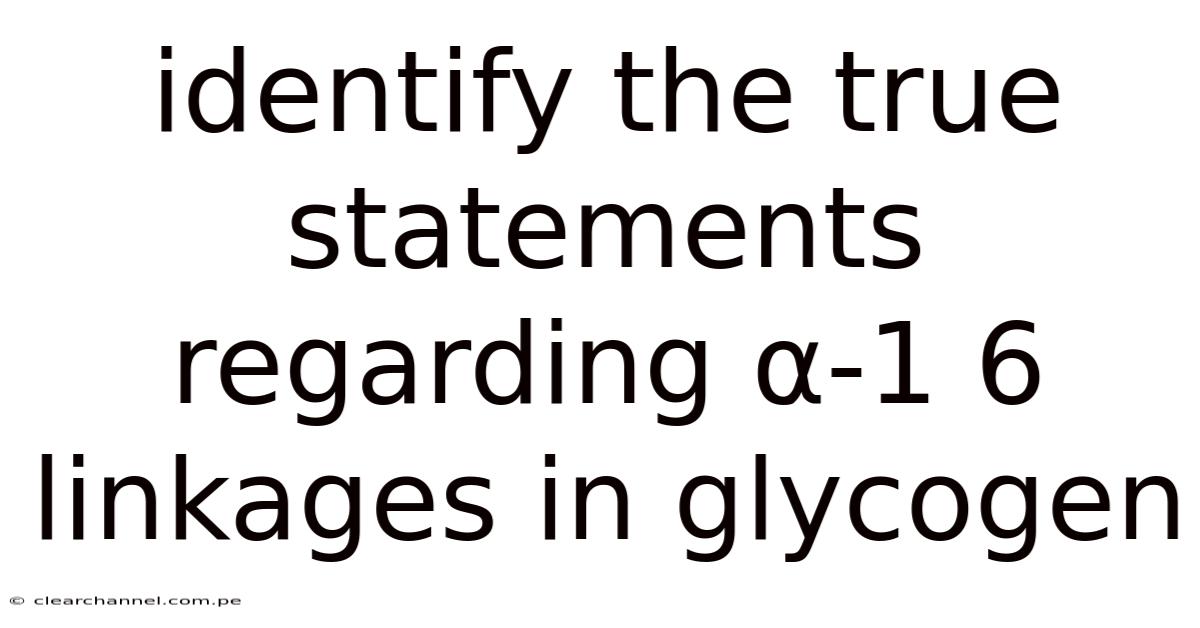Glycogen is a critical energy-storage molecule in animals and fungi, composed of glucose units linked by specific glycosidic bonds. Among these, α-1,6 linkages play a unique and essential role in the structure and function of glycogen. So naturally, these linkages are not just structural elements but also functional components that influence how glycogen is stored, broken down, and utilized by the body. This article explores the true statements about α-1,6 linkages in glycogen, clarifying their importance and distinguishing them from common misconceptions That's the whole idea..