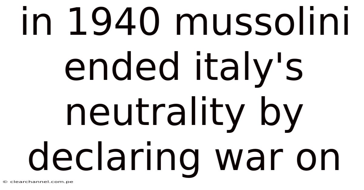 The year 1940 marked a central turning point in World War II, as Italy’s decision to abandon its neutrality and join the Axis powers reshaped the conflict’s trajectory. Under the leadership of Benito Mussolini, Italy’s shift from a neutral stance to active participation in the war was not merely a strategic move but a reflection of Mussolini’s ambitions, political pressures, and the evolving dynamics of the war in Europe. This article explores the circumstances that led to Italy’s declaration of war in 1940, the key players involved, and the broader implications of this decision Less friction, more output..