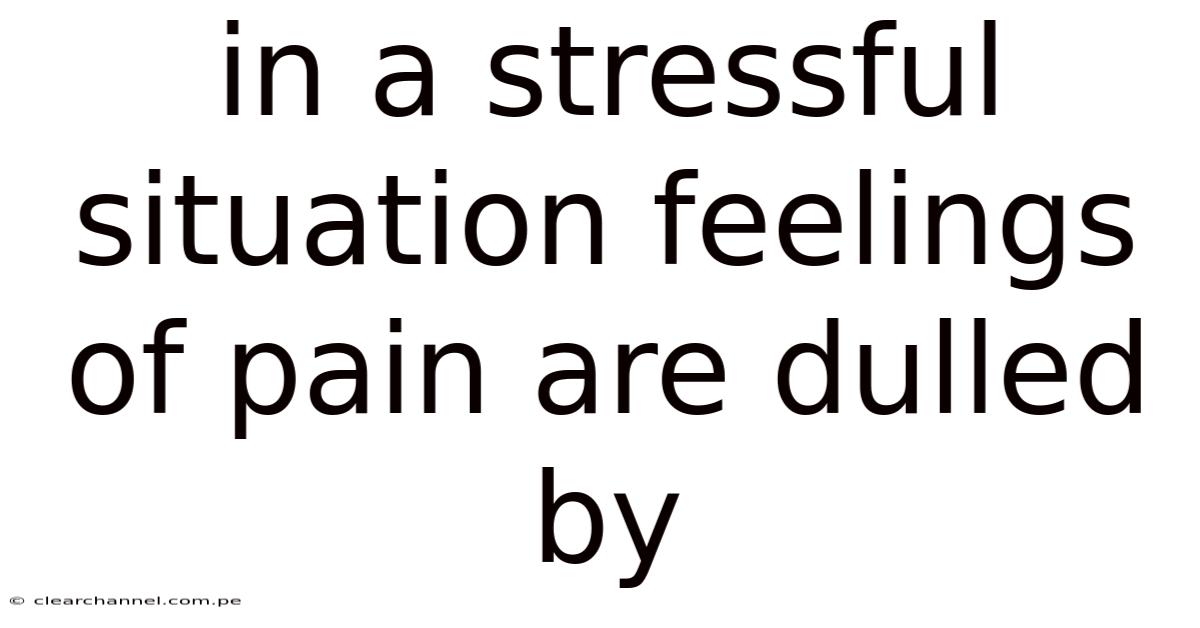In a Stressful Situation Feelings of Pain Are Dulled By: Understanding the Science Behind Stress-Induced Analgesia