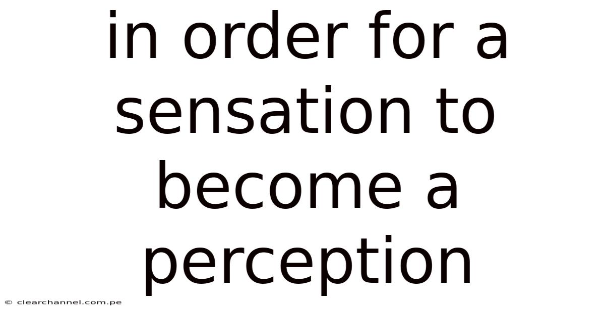 In Order For A Sensation To Become A Perception