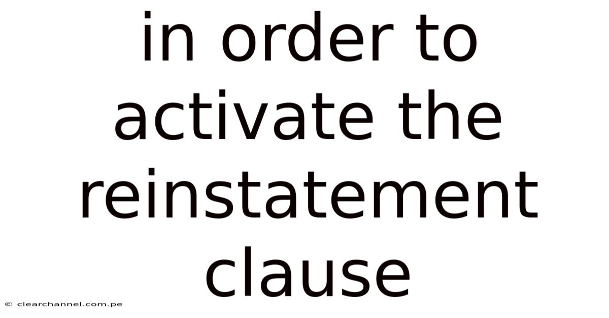 In Order To Activate The Reinstatement Clause