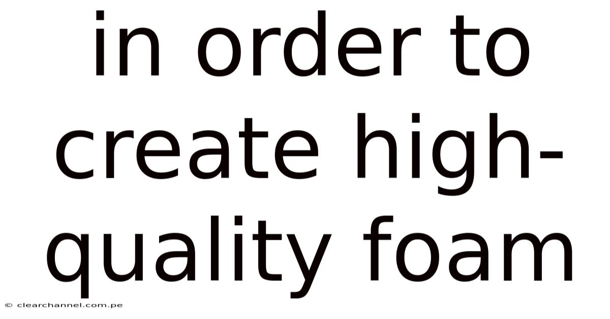 In Order To Create High-quality Foam