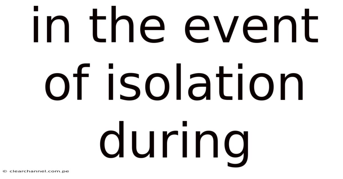When public health officials advise people to stay home, the phrase “in the event of isolation during” becomes a reality for millions. Whether the cause is a contagious disease outbreak, a severe weather event, or another public‑health emergency, isolation can disrupt daily routines, challenge mental well‑being, and test household resources. Knowing how to prepare, adapt, and thrive while separated from the wider community turns a stressful situation into an opportunity for growth and self‑care. This guide offers a comprehensive, step‑by‑step approach to navigating isolation safely and effectively, covering everything from supply planning to emotional support.