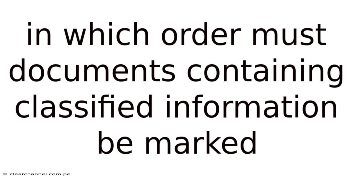 In which order must documents containing classifiedinformation be marked is a question that often arises in government agencies, defense contractors, and any organization that handles sensitive material. Proper marking is not merely a bureaucratic formality; it is the backbone of information security, ensuring that the right people see the right level of protection at the right time. This article walks you through the exact sequence of markings, explains why each step matters, and answers the most common questions that professionals encounter when they first confront classified documentation Easy to understand, harder to ignore. Simple as that..