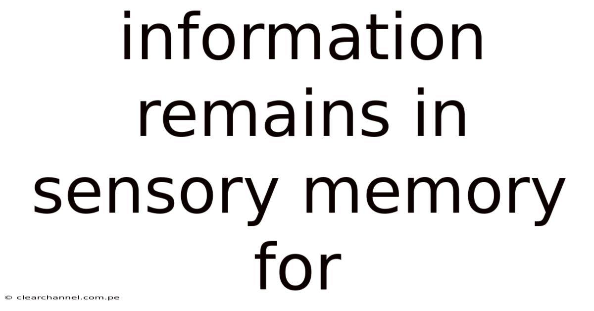 Information remains in sensory memory for abrief, yet crucial, interval that enables the brain to process incoming stimuli before they fade or are transferred to short‑term memory. This fleeting storage system acts as a gateway, allowing visual, auditory, and other sensory inputs to be registered, examined, and either dismissed or funneled onward. Understanding how long this retention lasts, what factors influence it, and how it interacts with other memory stages is essential for students of psychology, educators designing learning experiences, and anyone interested in the mechanics of human perception. The following article explores the nature of sensory memory, the duration of information storage, the underlying neural mechanisms, and answers common questions that arise when examining this foundational cognitive process Turns out it matters..