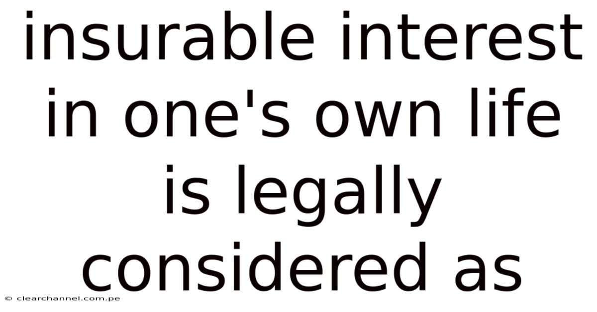 Insurable Interest In One's Own Life Is Legally Considered As