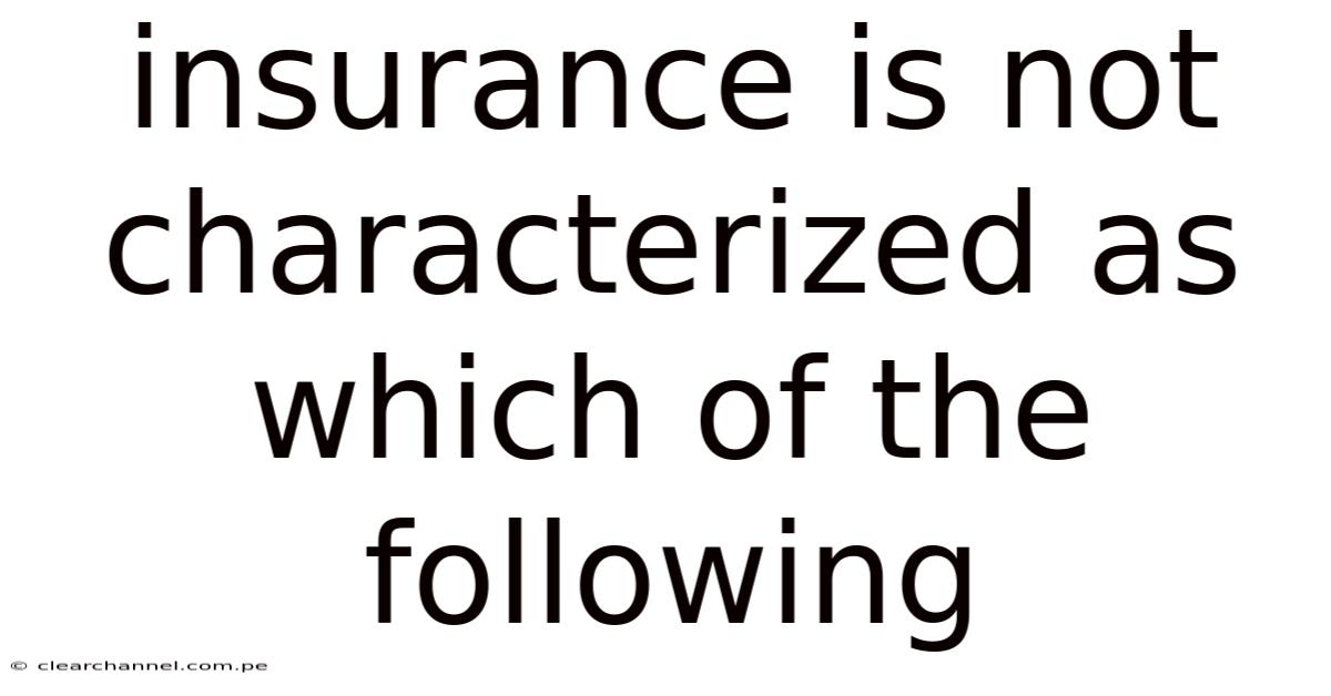 Insurance Is Not Characterized As Which Of The Following
