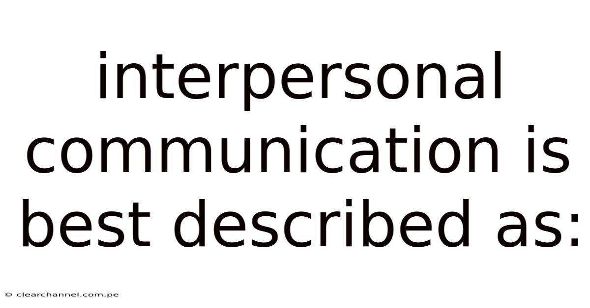 Interpersonal communication is best described as the dynamic, reciprocal process through which individuals exchange information, ideas, thoughts, feelings, and meanings through both verbal and non-verbal messages within a specific context. Consider this: it transcends mere conversation, encompassing the nuanced dance of understanding and being understood that forms the bedrock of human connection, relationship building, and effective collaboration in both personal and professional spheres. This fundamental human activity is not simply about transmitting words; it involves decoding complex layers of intent, emotion, and cultural nuance, making it a vital skill set for navigating the complexities of modern life and fostering meaningful bonds Still holds up..