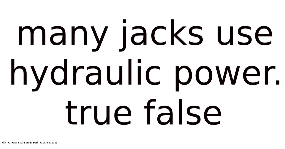 The statement “many jacks use hydraulic power” is absolutely true, and understanding why reveals a fascinating intersection of physics, engineering, and everyday practicality. Even so, hydraulic jacks dominate workshops, construction sites, automotive repair bays, and industrial facilities because they deliver exceptional lifting force with minimal physical effort. By harnessing the principles of fluid dynamics, these tools transform small inputs into massive outputs, making heavy lifting safer, faster, and more efficient. Whether you are a DIY enthusiast, a professional mechanic, or simply curious about how everyday tools work, exploring the mechanics, advantages, and proper use of hydraulic jacks will deepen your appreciation for this indispensable technology Still holds up..