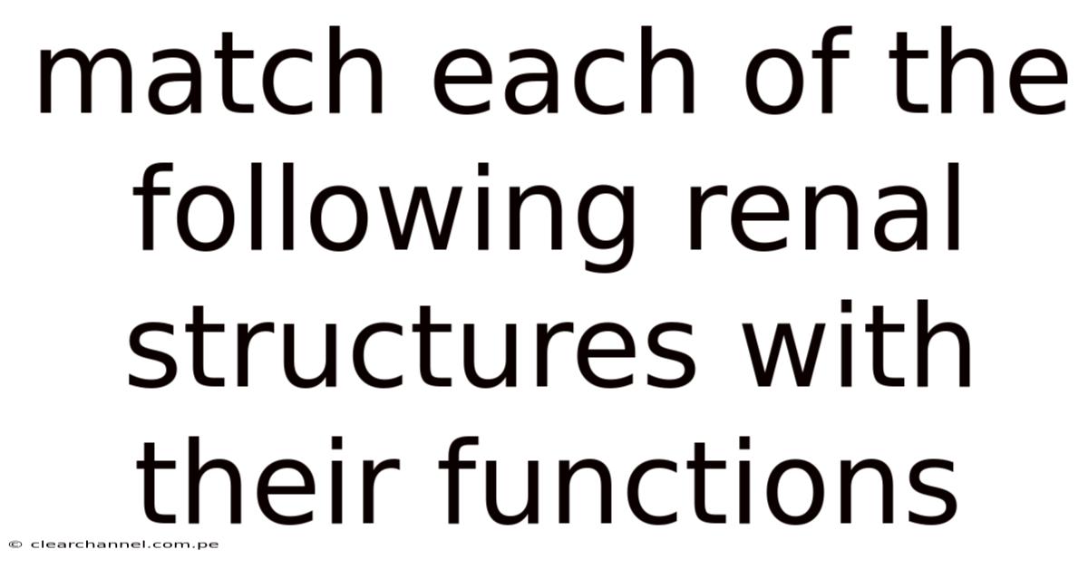 The kidneys are vital organs that perform several essential functions to maintain the body's homeostasis. Understanding the structure and function of each part of the kidney is crucial for comprehending how these organs work together to filter blood, regulate fluid balance, and produce urine. This article will match each renal structure with its corresponding function, providing a comprehensive overview of kidney anatomy and physiology.