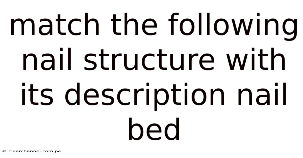 Introduction Understanding the nail bed and its relationship to other nail structures enables students, educators, and nail care professionals to diagnose conditions, design appropriate treatments, and communicate effectively about nail health. This article provides a full breakdown to matching the nail bed with its description, explains the underlying science, and offers practical tips for accurate identification.