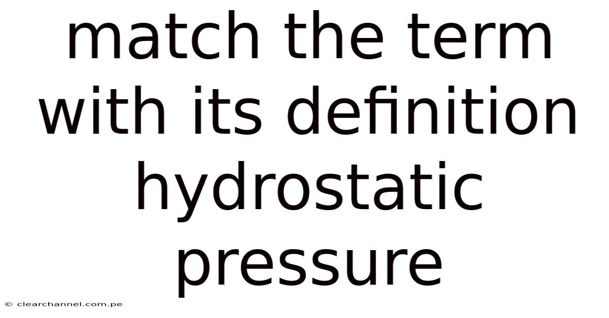 Hydrostatic pressure is a fundamental concept with wide-ranging applications in science and engineering. By matching terms with their definitions, we gain a deeper understanding of how fluids behave under the influence of gravity and how this knowledge can be applied to solve real-world problems. Whether you're a student learning about fluid mechanics or a professional working in a related field, mastering these concepts is crucial for success and innovation in your chosen area.