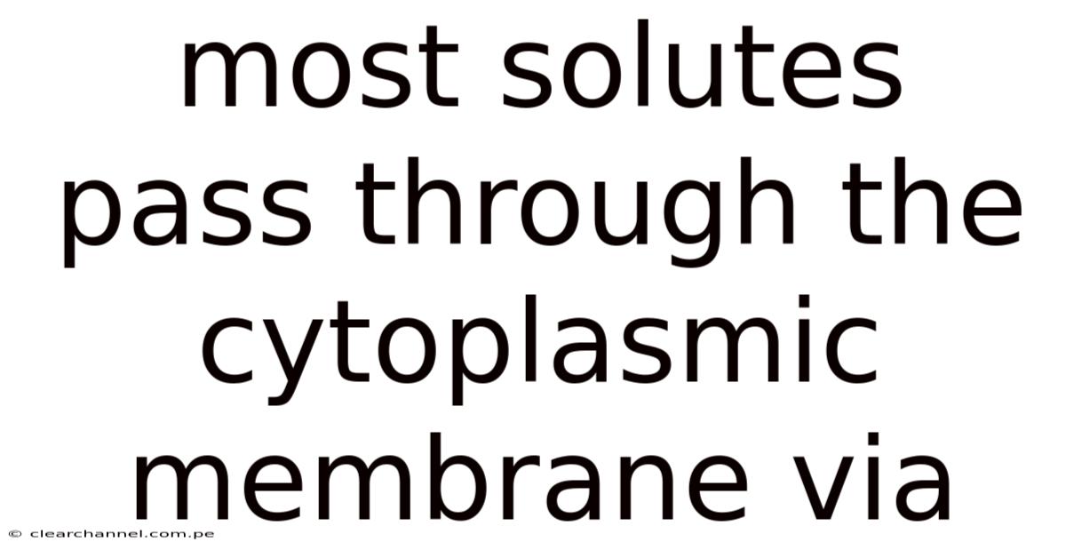 Most Solutes Pass Through The Cytoplasmic Membrane Via