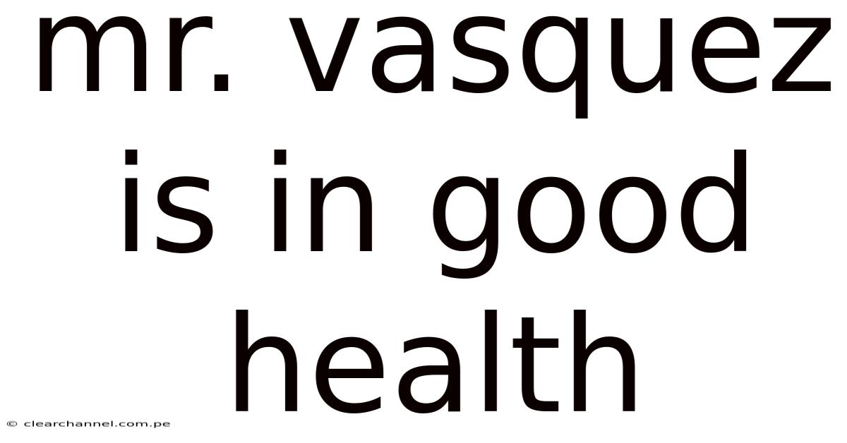 Mr. Vasquez is in goodhealth, and the latest medical evaluation confirms that his vital signs, lab results, and physical examinations all fall within optimal ranges. This comprehensive assessment not only reassures patients and colleagues but also serves as a valuable case study for understanding how balanced lifestyle choices, regular monitoring, and proactive preventive measures can sustain long‑term well‑being. Because of that, below, we explore the factors contributing to Mr. Vasquez’s solid health, outline practical steps anyone can adopt, and answer common questions about maintaining similar health outcomes Simple, but easy to overlook. Nothing fancy..