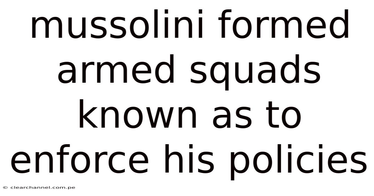 Mussolini’s Armed Squads: How the Fascist Regime Enforced Its Policies
