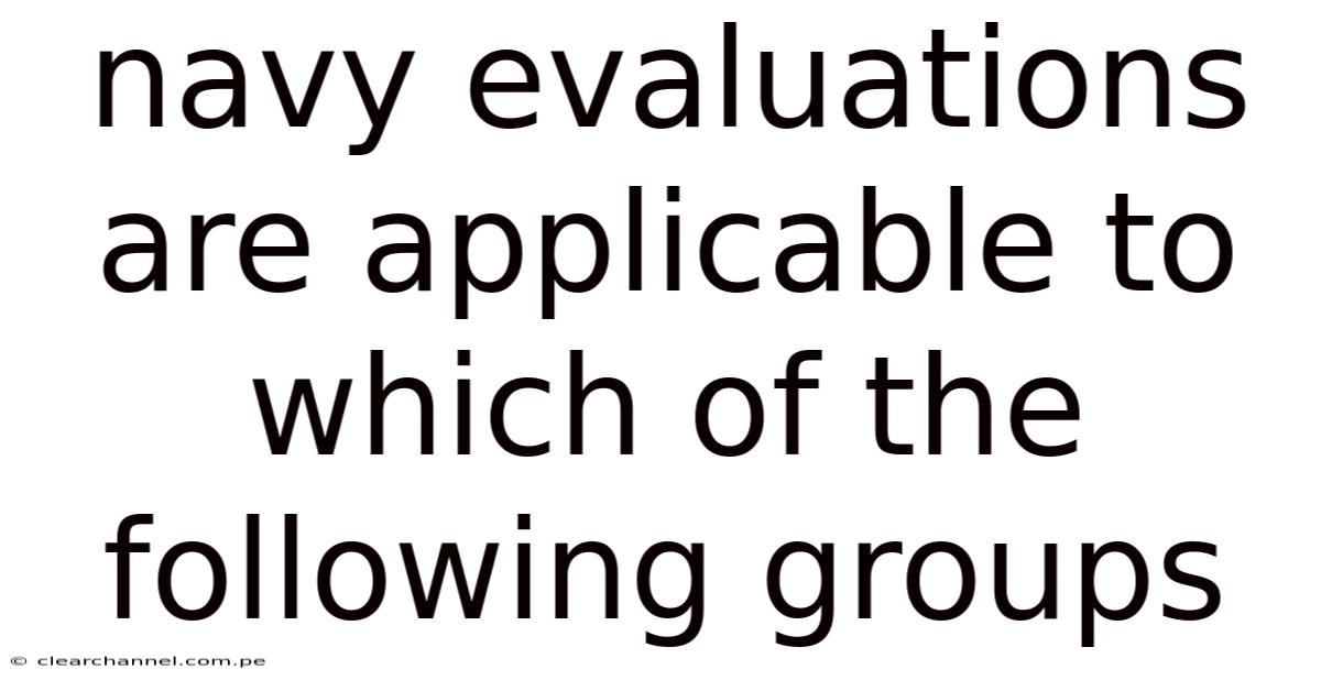 Navy evaluations are a cornerstone of career development and personnel management within the United States Navy, providing a structured way to assess individual performance, potential, and readiness for future assignments. Because of that, while many associate the evaluation process solely with enlisted sailors, the system actually spans several distinct groups, each with its own form, timeline, and impact on promotion and retention. Understanding which personnel are covered by Navy evaluations helps service members, civilians, and families figure out career pathways, set realistic expectations, and make informed decisions about professional growth It's one of those things that adds up..