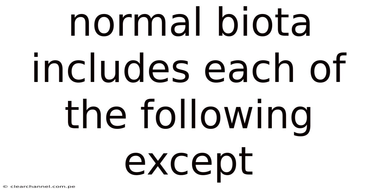 Q: Why do textbooks and exams use the phrase “normal biota includes each of the following except”? A: This format tests your ability to differentiate between commensal/mutualistic organisms and true pathogens. It reinforces a core microbiological principle: not all microbes are harmful, but not all microbes belong in the human body either.
