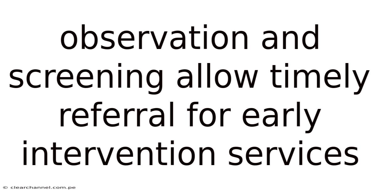 When we talk about observation and screening, we are referring to systematic processes that help us detect subtle changes in a child’s development. Think about it: these processes are essential for catching issues early, when interventions are most effective. Early detection allows for timely referrals to specialists, such as speech therapists, occupational therapists, or psychologists, who can provide the necessary support.