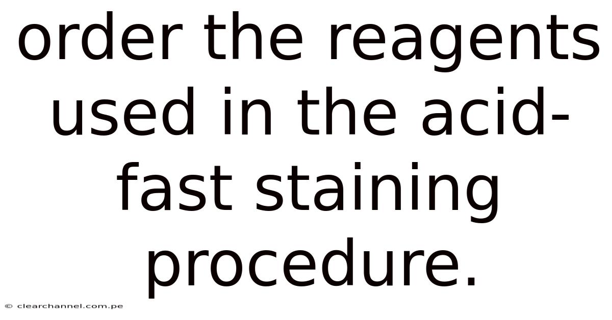 The success of acid-fast staining depends heavily on the quality and specificity of the reagents used. Additionally, other materials such as slides, coverslips, and fixatives may be required depending on the specific protocol. The primary reagents include carbol fuchsin, acid-alcohol, and methylene blue, each playing a distinct role in the staining process. Now, ordering the reagents used in the acid-fast staining procedure requires careful consideration of their chemical properties, compatibility, and availability. Ensuring that all reagents are ordered correctly and are of high purity is vital for achieving reliable and reproducible results Still holds up..