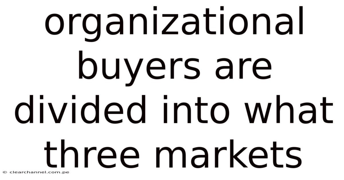 Organizational buyers represent a crucial segment of the business landscape, purchasing goods and services for purposes other than personal consumption. Unlike individual consumers who buy products for personal use, organizational buyers acquire items to make easier production, resale, or operations. Understanding how these buyers are categorized is essential for marketers and business strategists to develop effective approaches. Still, the organizational buyer market is traditionally divided into three distinct categories: business markets, government markets, and institutional markets. Each of these markets operates with unique characteristics, purchasing behaviors, and decision-making processes that require specialized marketing strategies It's one of those things that adds up..