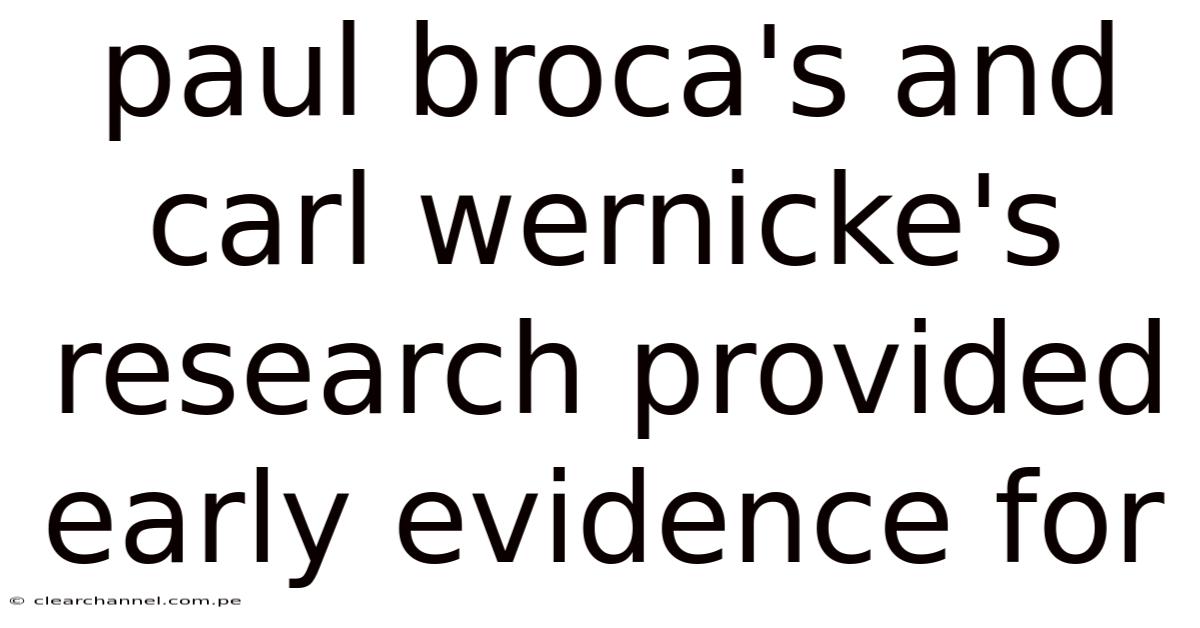 Paul Broca's And Carl Wernicke's Research Provided Early Evidence For