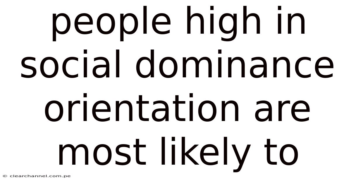 People high in social dominance orientation are most likely to engage in specific behaviors and hold particular attitudes that reflect their fundamental orientation toward hierarchy. Understanding these tendencies provides insight into their decision-making processes and social interactions.