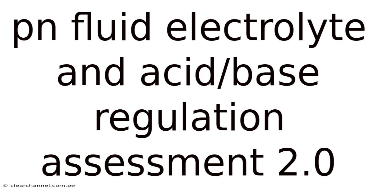 The pn fluid electrolyte and acid/base regulation assessment 2.0 serves as a cornerstone for comprehensive patient monitoring in settings ranging from intensive care units to outpatient clinics. Its primary purpose is to provide a clear, actionable snapshot of a patient’s internal environment, enabling timely interventions. This article outlines the core concepts, practical steps, and clinical relevance of the assessment, offering a resource that can be referenced for both learning and quick bedside decision‑making.