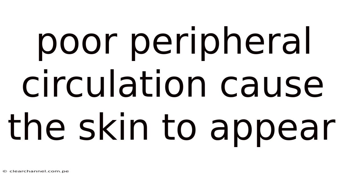 Poor peripheral circulation is a condition where blood flow to the extremities—such as the arms and legs—is significantly reduced. Think about it: this impairment can lead to a range of visible changes in the skin, making it appear pale, cold, or even discolored. Consider this: understanding how poor peripheral circulation affects skin appearance is crucial for recognizing early signs of underlying health issues and taking proactive steps to address them. The skin, being one of the body’s largest organs, relies heavily on adequate blood flow to receive oxygen, nutrients, and immune support. When circulation is compromised, these essential elements are limited, leading to visible and sometimes painful skin changes It's one of those things that adds up. That alone is useful..