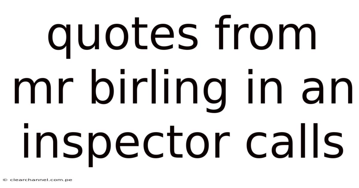 Mr. As the pompous, self-satisfied owner of a Brumley factory, Arthur Birling embodies the entrenched capitalist mindset and complacent social hierarchy Priestley sought to dismantle. Still, birling's quotes in J. His words, delivered with unwavering conviction and a sense of inherent superiority, serve as stark contrasts to the Inspector's relentless probing into collective responsibility and the interconnectedness of humanity. Priestley's An Inspector Calls are far more than mere dialogue; they are potent capsules of the very attitudes and values the play ruthlessly exposes and condemns. B. Analyzing these quotes reveals not just the character's flaws, but the core ideological battleground of the play itself That's the part that actually makes a difference..