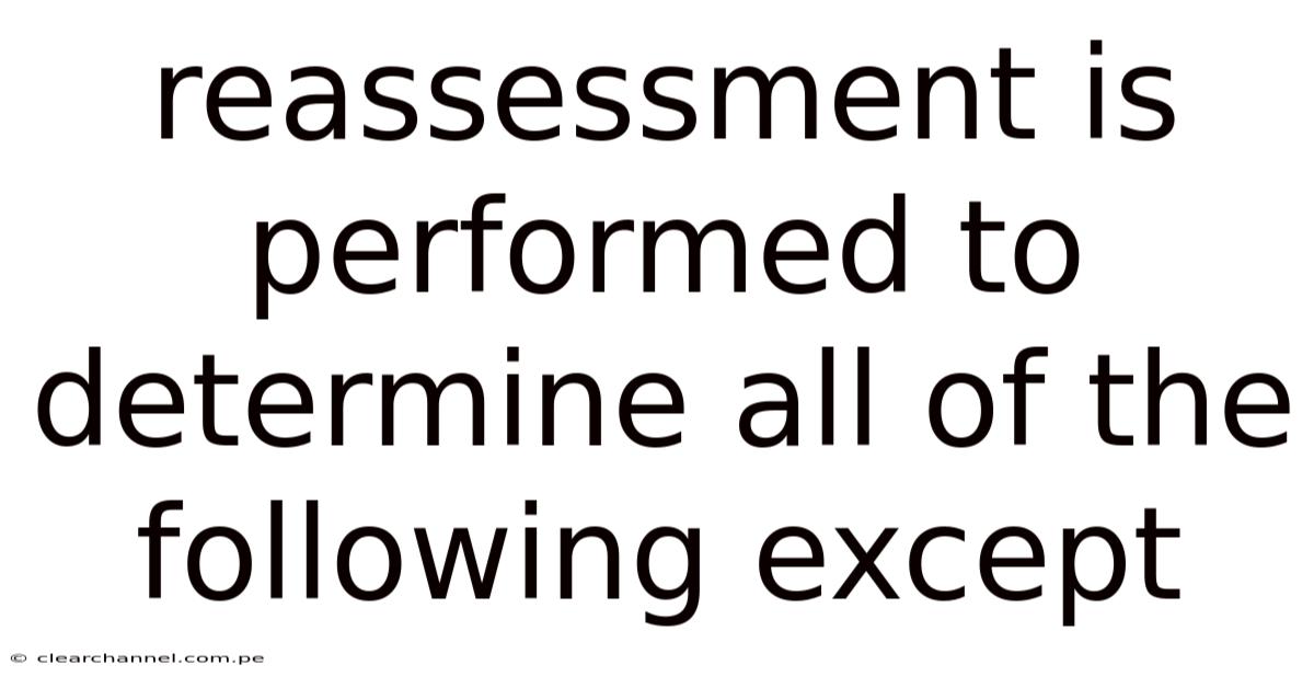Reassessment is performed todetermine all of the following except the individual’s long‑term career aspirations, which are usually addressed through separate planning mechanisms. This opening paragraph also serves as a concise meta description, embedding the target keyword while promising a clear explanation of the concept, its purposes, and the specific item that does not belong in the assessment scope.