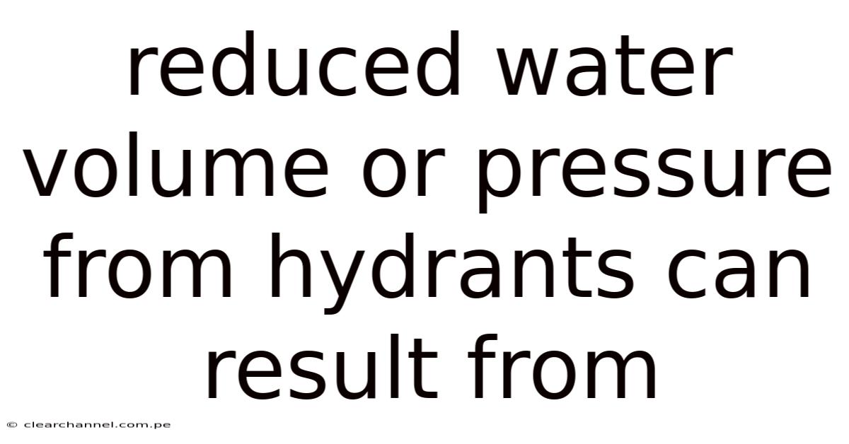 Reduced Water Volume Or Pressure From Hydrants Can Result From