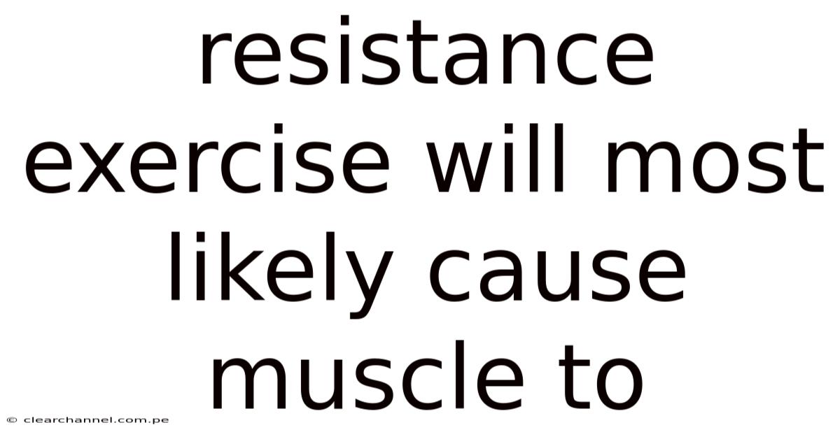 Resistance exercise will most likely cause muscle to grow through a process called hypertrophy. Hypertrophy occurs when individual muscle fibers increase in size, primarily due to an increase in contractile proteins such as actin and myosin. This growth is supported by satellite cells, which act like stem cells for muscle tissue. When activated by resistance training, these cells donate their nuclei to muscle fibers, allowing for greater protein synthesis and repair capacity.