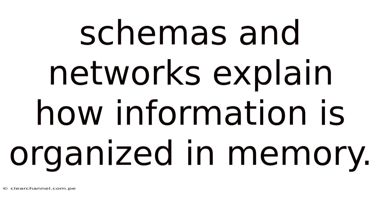 Schemas and networks are integral to how we process and store information in our memory. Which means they provide a framework for understanding the world, influence our perceptions and behaviors, and are crucial for learning and memory. By recognizing the power of schemas and networks, we can better understand our cognitive processes and potentially enhance our ability to learn and remember But it adds up..