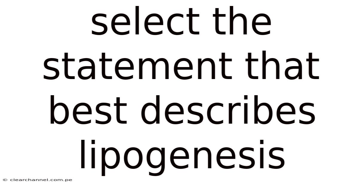 The concept of lipogenesis represents a fundamental yet often misunderstood aspect of biochemistry and physiology, underpinning the involved dance between energy storage and metabolic regulation within living organisms. In practice, at its core, lipogenesis refers to the biochemical process through which the body constructs triglycerides—complex molecules composed of glycerol and fatty acids—that serve as critical storage units for excess energy derived from carbohydrates, lipids, or protein breakdown. In real terms, while numerous terms and theories surround lipogenesis, clarity and specificity are essential to avoid ambiguity, ensuring the chosen phrase resonates universally while capturing the essence of this complex metabolic pathway. This process is not merely a passive storage mechanism but an active regulatory response that balances an organism’s energy intake against expenditure, ensuring metabolic stability. Yet pinpointing the most accurate and representative statement to encapsulate this concept demands careful consideration of context, precision, and relevance. In practice, such precision allows readers to grasp not only the definition but also its implications, making it a cornerstone for understanding both basic science and applied fields like nutrition, pharmacology, and physiology. The challenge lies in selecting a term that is both universally accessible and sufficiently descriptive, balancing technical accuracy with simplicity, thereby serving as a versatile anchor for further exploration Less friction, more output..