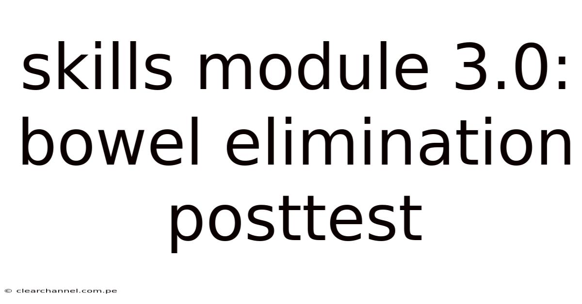 The Skills Module 3.0: Bowel Elimination Posttest represents a structured and evidence-based approach to evaluating and enhancing an individual’s ability to manage bowel elimination effectively. This module is particularly relevant in clinical, educational, or rehabilitation settings where understanding and optimizing bowel function is critical. The posttest component of this module serves as a final assessment tool, designed to measure progress, identify gaps, and reinforce key skills related to bowel elimination. By integrating practical techniques with scientific principles, the module ensures that learners or participants not only grasp theoretical concepts but also apply them in real-world scenarios. Still, the posttest is not merely a test of knowledge but a comprehensive evaluation of behavioral, physiological, and psychological factors that influence bowel health. Its purpose is to provide actionable insights, enabling individuals to refine their habits, address underlying issues, and achieve long-term improvements in bowel function Most people skip this — try not to..