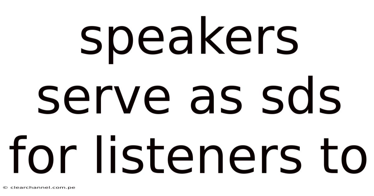 The human voice, when harnessed effectively, transforms from mere sound into a powerful conduit of understanding, emotion, and connection. This article explores the concept of speakers acting as SDS (Speech Delivery Systems) for listeners, delving into the mechanics, significance, and practical applications of this vital support mechanism. For listeners navigating complex information, diverse accents, or challenging auditory environments, the clarity and delivery of a speaker become very important. Understanding this dynamic enhances communication efficacy, fosters inclusivity, and unlocks deeper comprehension for audiences everywhere It's one of those things that adds up..