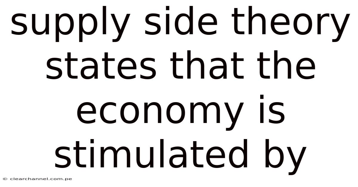 Supply Side Theory States That the Economy Is Stimulated by Tax Cuts and Deregulation