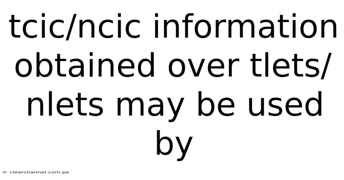 TCIC/NCIC Information Obtained Over TLETS/NLETS: Uses and Implications