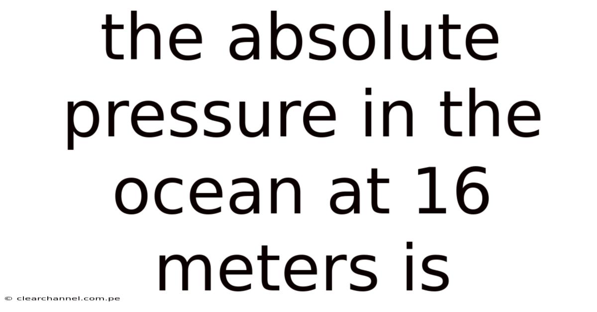 The absolute pressure in the ocean at 16 meters is a foundational measurement in marine physics, underwater diving, and subsea engineering. Even so, understanding how pressure accumulates beneath the surface allows professionals and enthusiasts to predict gas behavior, design safe equipment, and figure out aquatic environments with confidence. Consider this: at this specific depth, the combined weight of the atmosphere and the overlying seawater creates a measurable force that directly influences human physiology, buoyancy control, and material integrity. By exploring the exact calculation, the underlying physical principles, and practical applications, you will develop a clear, actionable understanding of how underwater pressure works and why it matters But it adds up..