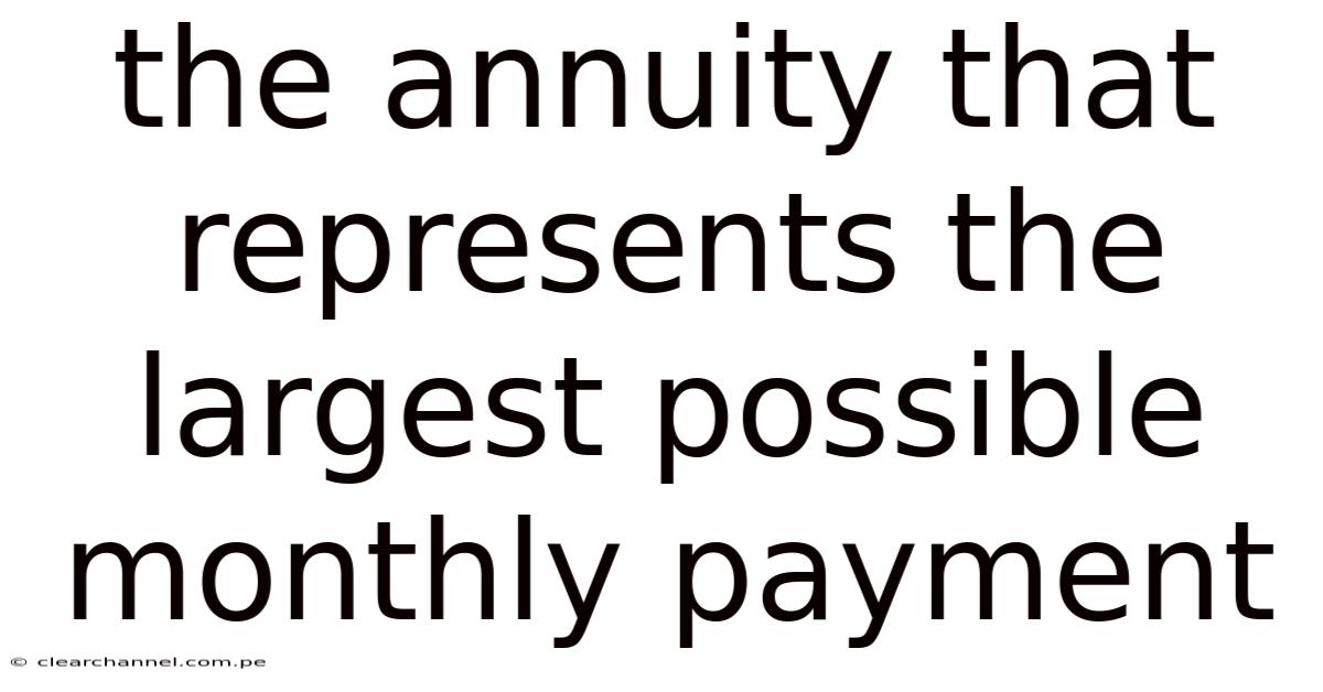 The annuity that offers the largest possiblemonthly payment is typically the immediate fixed annuity purchased at a younger age, purchased with a lump sum, and structured for payments that continue for life. While it's impossible to guarantee the absolute highest possible payment without knowing every individual's unique circumstances, understanding the factors that maximize monthly payouts is crucial That alone is useful..