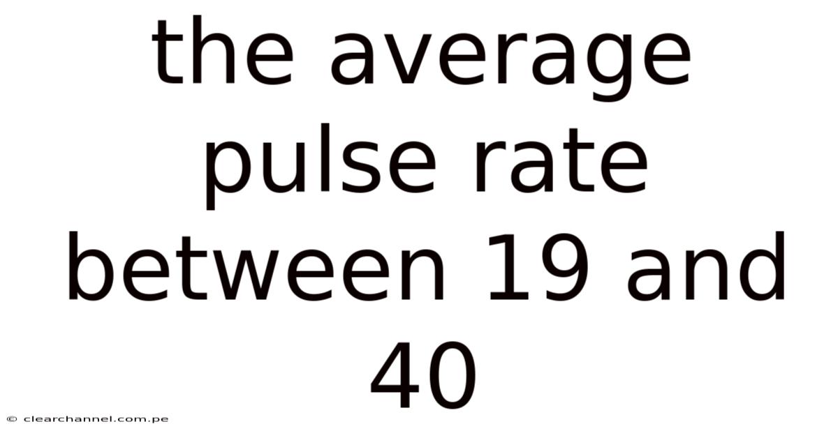 The average pulse rate between 19 and 40 represents a critical indicator of physiological well-being, reflecting the interplay between the heart’s rhythmic function and the body’s metabolic processes. Think about it: understanding this range empowers individuals to monitor their health proactively, making it a cornerstone of personal care routines. On the flip side, such awareness serves as a foundation for making informed decisions about lifestyle adjustments, dietary choices, and medical consultations. For those navigating daily life, recognizing deviations from this norm can signal underlying issues or prompt timely action. This metric, often associated with vitality, provides insights into cardiovascular health, stress levels, and overall wellness. In this context, the 19–40 pulse rate zone becomes a lens through which one can assess their physical state, bridging the gap between abstract health concepts and tangible outcomes Easy to understand, harder to ignore..