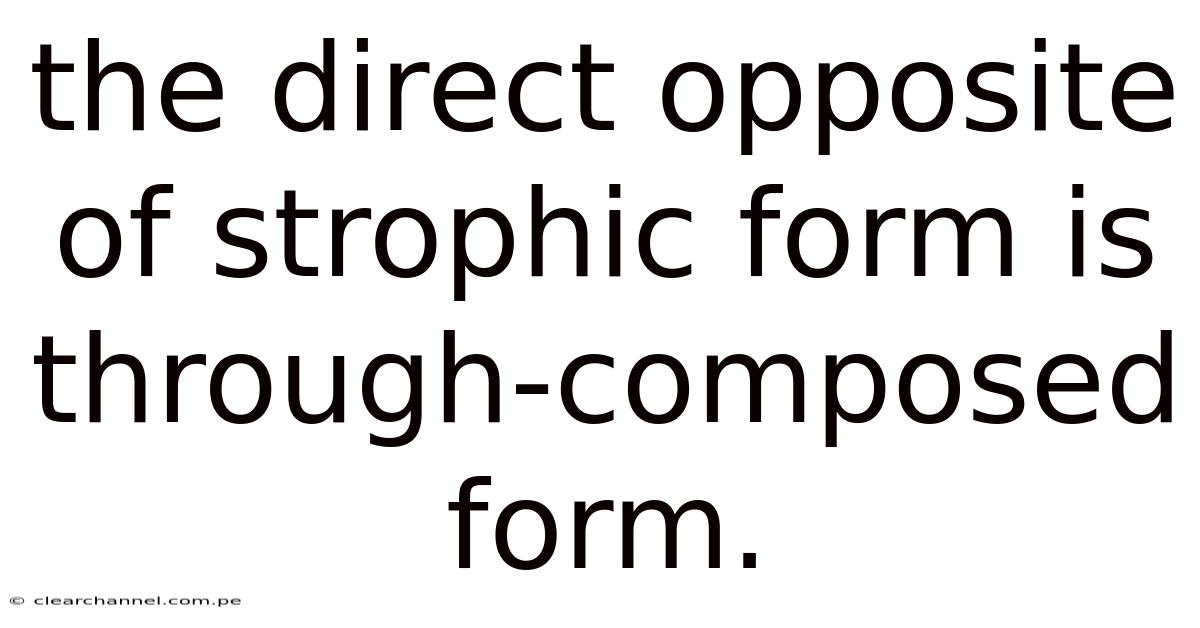 The direct opposite of strophic form is through‑composed form, and each offers distinct advantages that influence how a piece of music communicates with its audience. Through‑composed structure, on the other hand, invites listeners on a dynamic musical journey, ensuring that every moment feels fresh and emotionally resonant. Now, strophic structure provides familiarity and ease of sing‑along, making it ideal for folk tunes, hymns, and simple pop songs. By understanding these contrasting forms, composers, songwriters, and music lovers can appreciate the deliberate choices that shape the listening experience, and perhaps even experiment with blending the two to create something uniquely compelling But it adds up..