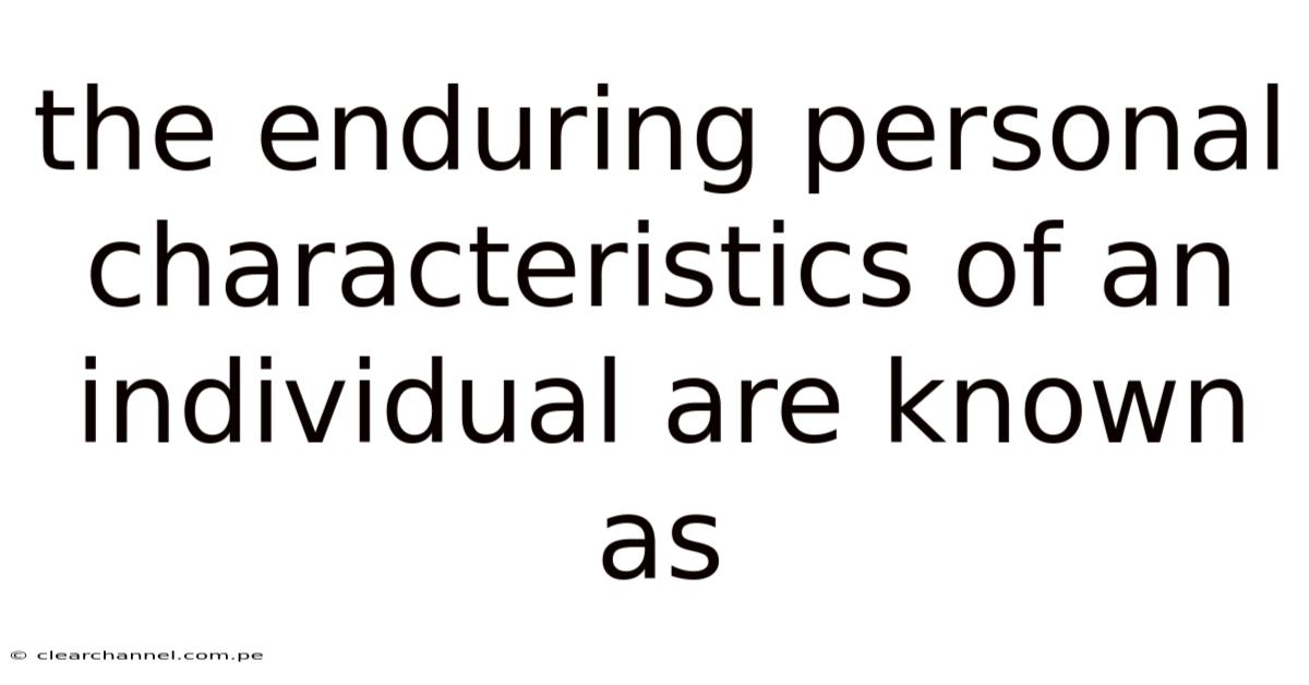The Enduring Personal Characteristics of an Individual Are Known as Personality Traits