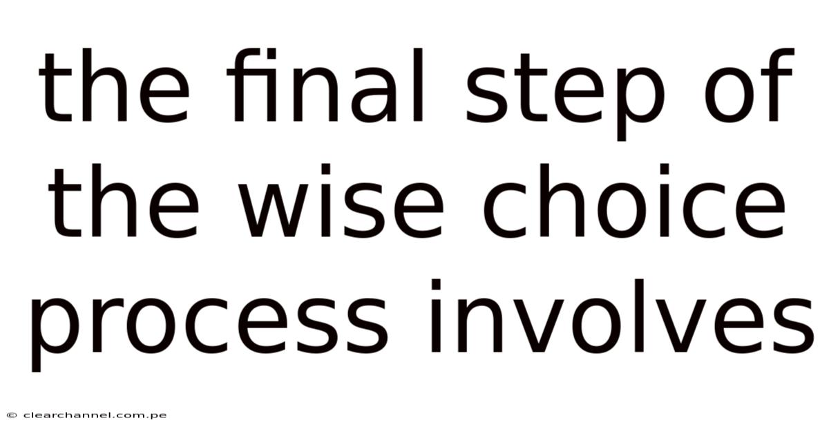 The final step of the wise choice process—implementation and reflection—is where theory meets practice. By meticulously planning actions, assigning clear roles, managing risks, monitoring progress, and reflecting on outcomes, a decision transcends intent and becomes a catalyst for tangible change. Embracing this phase not only ensures success for the current decision but also strengthens the decision‑making framework for future challenges, turning every choice into a stepping‑stone toward sustained improvement Not complicated — just consistent..