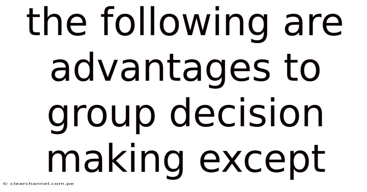 Group decision making has become a cornerstone of modern organizations, educational settings, and community projects. This article explores the key advantages that collaborative decision processes bring, then isolates the one statement that does not belong among those benefits. When individuals combine their knowledge, skills, and perspectives, the resulting choices tend to be more dependable, creative, and widely accepted. By the end, readers will have a clear, evidence‑based understanding of why group decision making is often praised—and where its limits lie Simple, but easy to overlook. But it adds up..