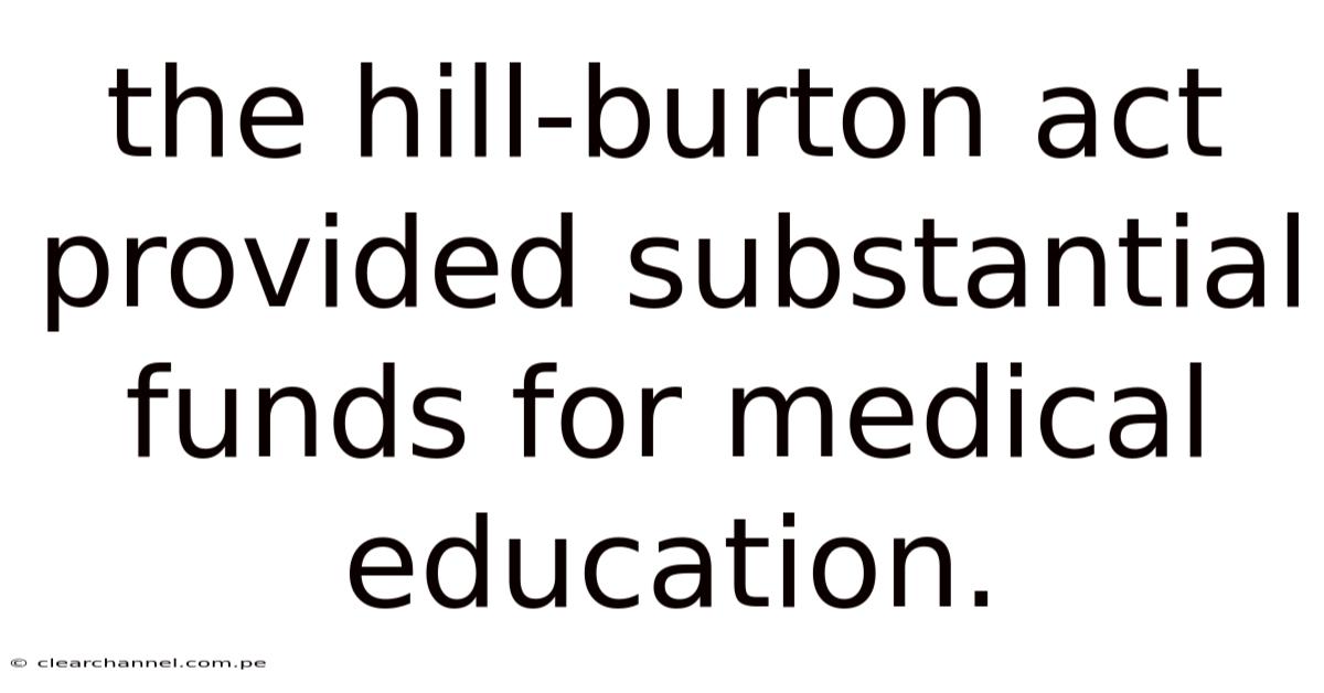 The Hill-burton Act Provided Substantial Funds For Medical Education.