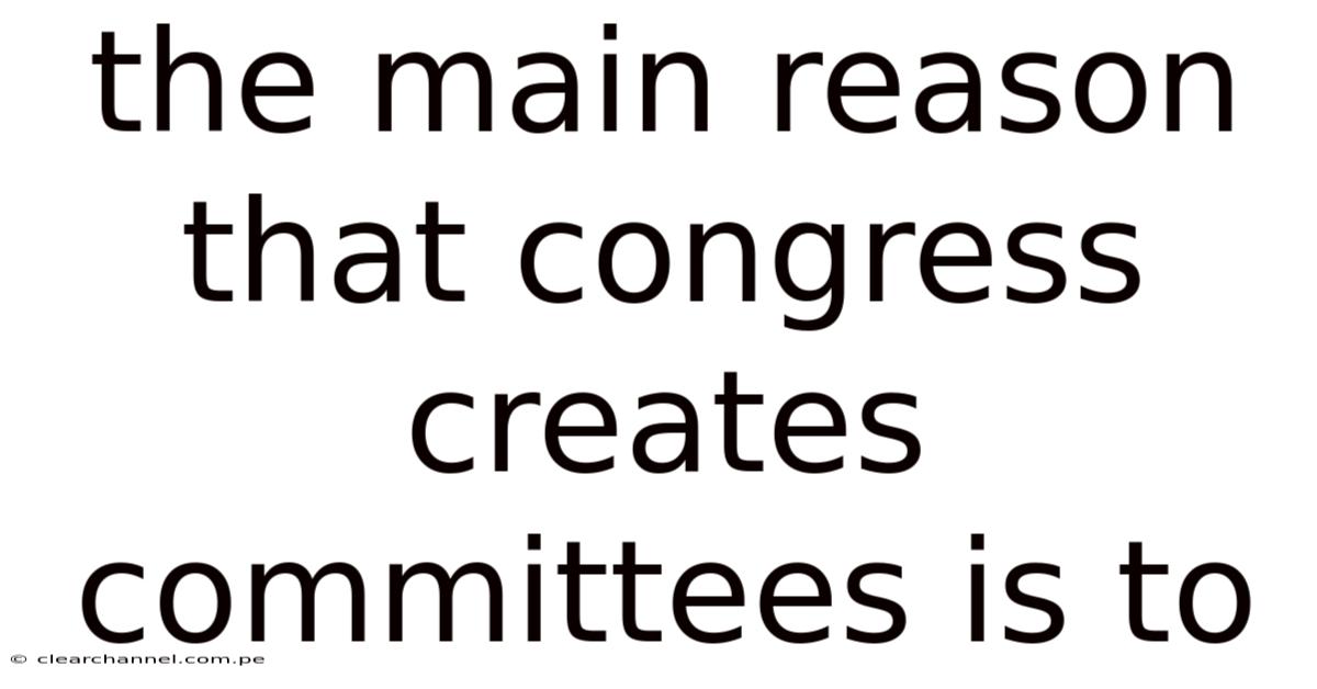 The Main Reason That Congress Creates Committees Is To