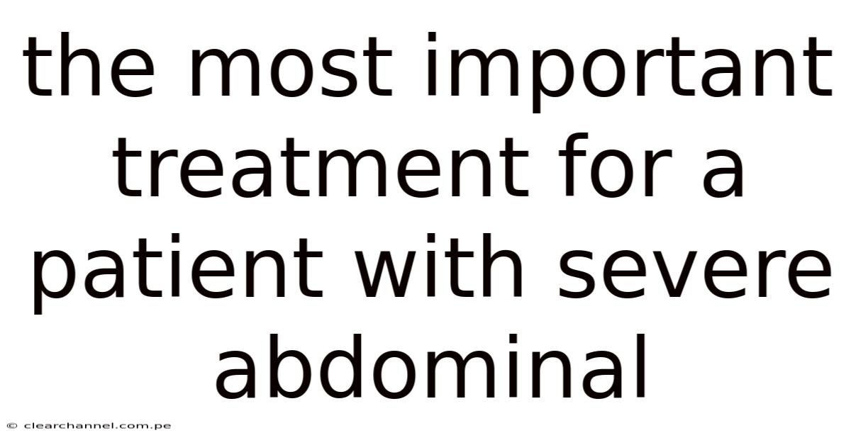 Although resuscitation and analgesia are vital, the single most important treatment is the prompt initiation of disease‑specific therapy that directly addresses the underlying pathology. This principle can be summarized as “treat the cause while you support the patient.” Below are the core interventions for the most common life‑threatening causes of severe abdominal pain.