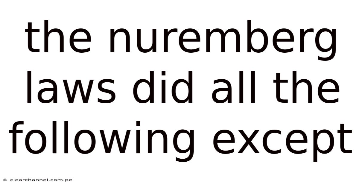 To identify what the Nuremberg Laws did not do, it is essential first to outline their core objectives. The laws were not merely symbolic; they were legally enforceable measures that reshaped German society. The two primary components were the Reich Citizenship Law and the Law for the Protection of German Blood and German Honor Not complicated — just consistent..