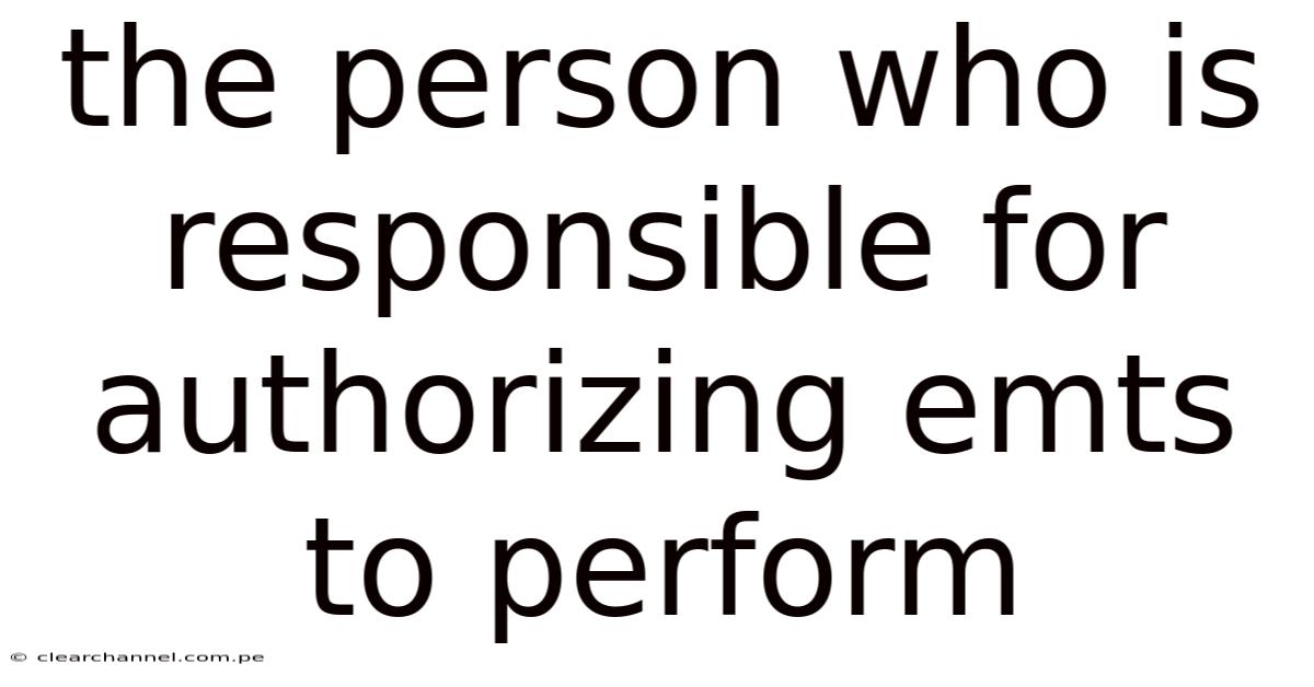 The Person Responsible for Authorizing EMTs to Perform: Ensuring Public Safety Through Rigorous Standards